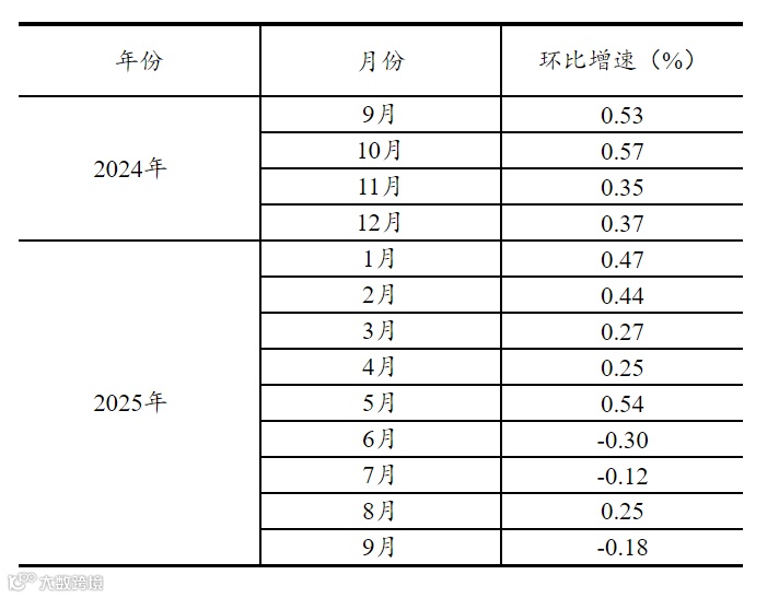 根据季节调整模型自动修正的结果,对2024年9月份以来的社会消费品零售总额环比增速进行修订。修订结果及2025年9月份环比数据如下: