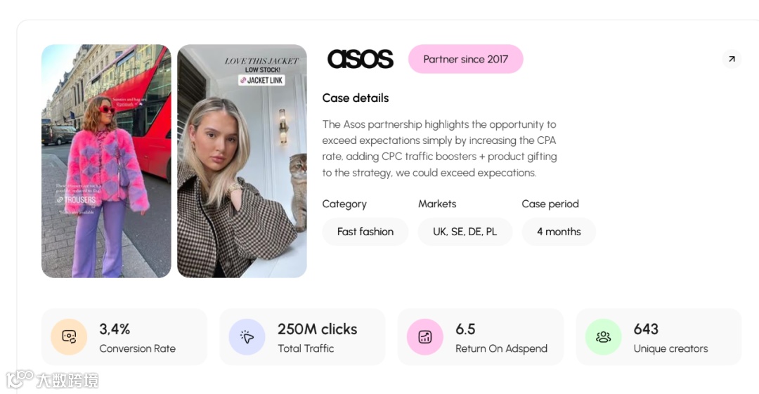 其合作的 ASOS 案例也提及了多种合作付费模式。