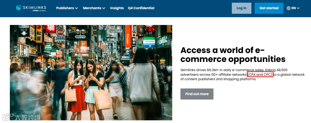 Sub network 次级联盟平台 Skimlinks 也支持 CPC。