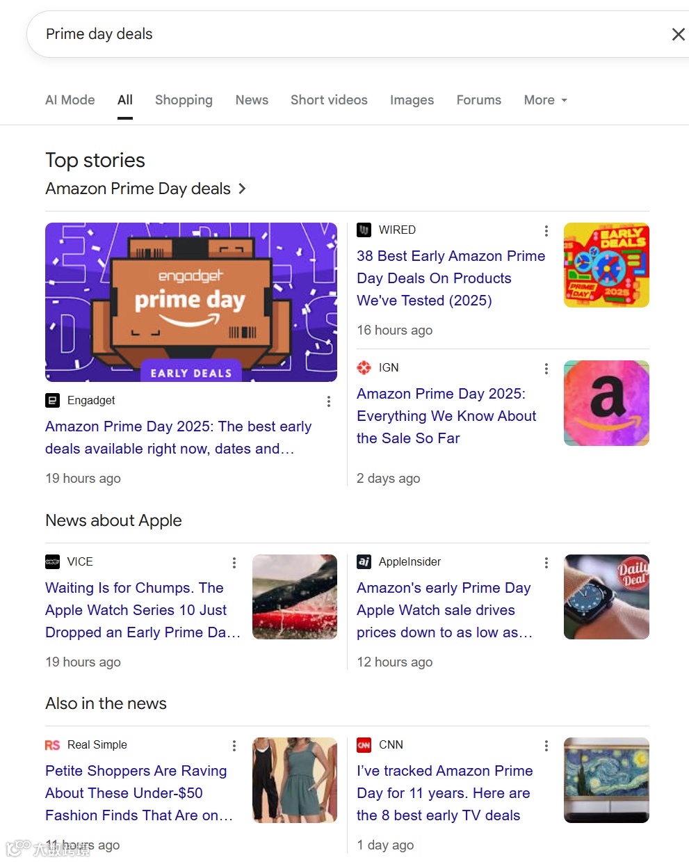 如果在 Google 上搜索 Prime Day deals, 已经有非常多的内容。