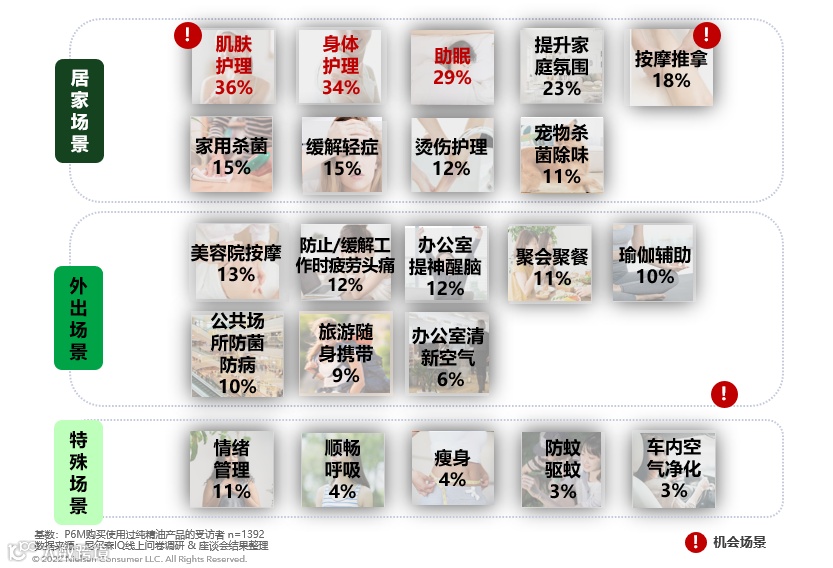 随着越来越多的消费者认识到精油的健康作用,尼尔森IQ近日针对专业精油产品消费者趋势及洞察展开研究。此次调研主要覆盖全国主要一二线城市,特别邀请各地区的消费者对精油产品展开积极探索及体验,从而获得了来自消费者的及时反馈。