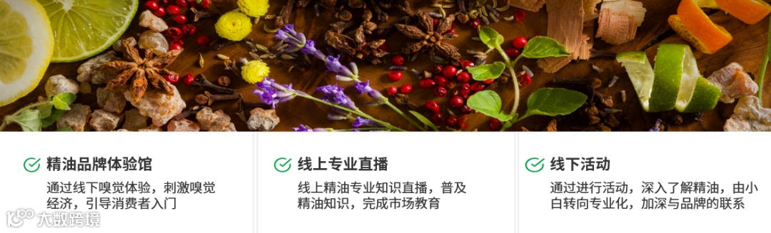 对于精油香氛品牌而言,线上线下双渠道联动逐渐成为未来趋势; 线下体验馆、直播课程、线下活动等丰富多元