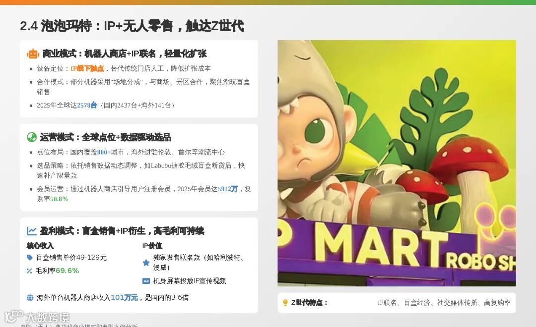 AI 视觉识别(准确率 99.92%)、边缘计算、区块链溯源等技术落地,业态延伸至 “前店后仓”(焦氏好客)、移动零售车(杭州西溪湿地无人车),并与 IP(泡泡玛特)、环保(可口可乐回收机)深度结合。