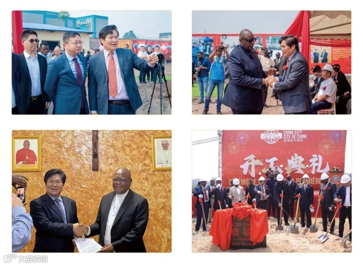 左上:中国驻刚果(金)大使参观指导刚果(金)中国城项目现场