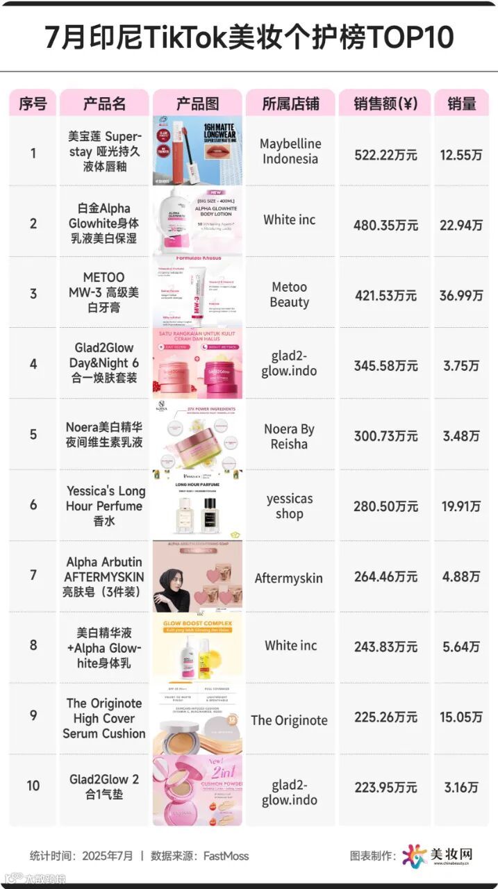 印尼榜单最显著的特点是美白功效产品占据主导地位。从第二名白金Alpha Glowhite身体乳液美白保湿,到第三名METOO MW-3高级美白牙膏,再到第五名Noera美白精华夜间维生素乳液和第八名美白精华液+Alpha Glowhite身体乳组合,美白诉求贯穿整个榜单。这种趋势与印尼消费者对白皙肤色的文化偏好密切相关,品牌商通过将美白成分(如Alpha Arbutin、维生素等)融入身体乳、牙膏、精华等不同品类,创造了交叉销售机会。
