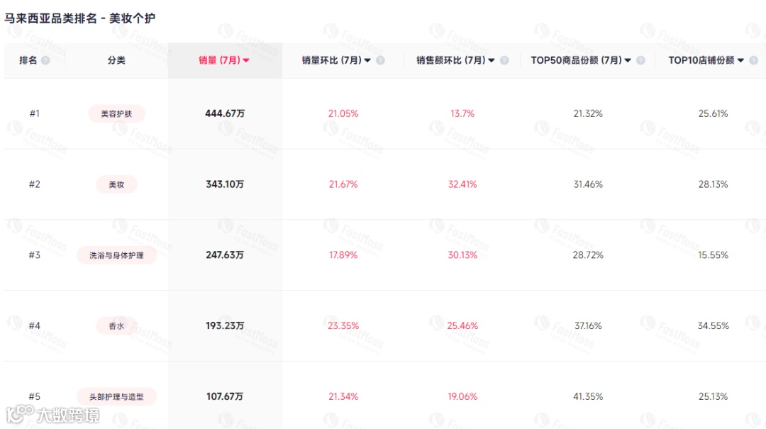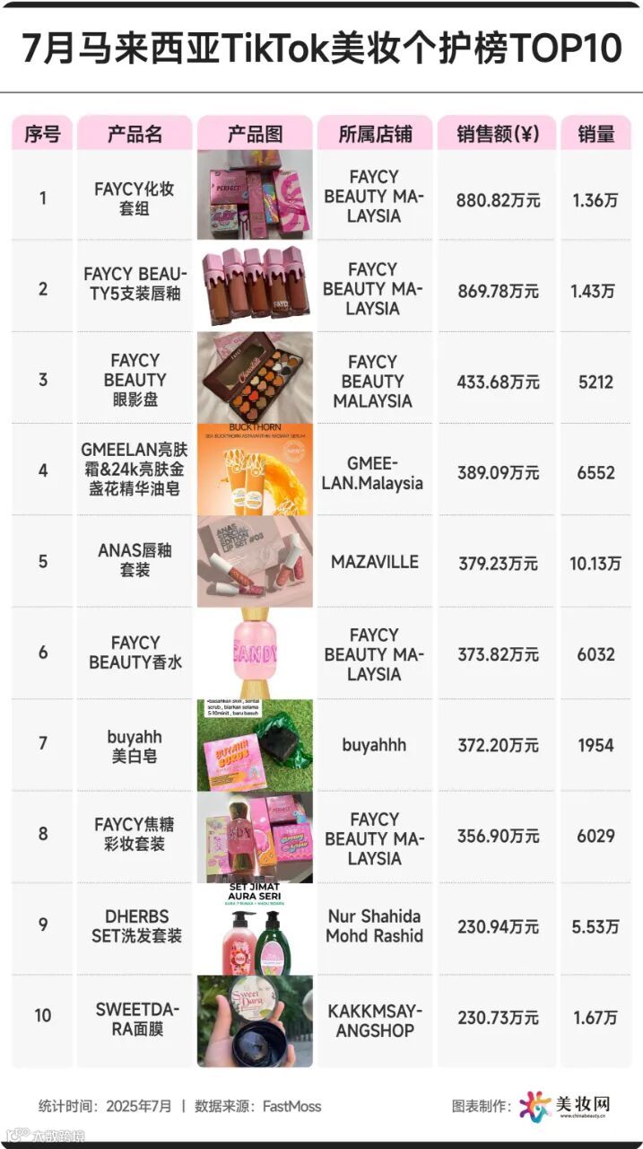 马来西亚榜单中的产品描述相对简单,但依然可以看出消费者对彩妆套装(FAYCY化妆套组、ANAS唇釉套装、FAYCY焦糖彩妆套装)和美白功效(GMEELAN亮肤霜、buyahh美白皂)的偏好。与国际品牌主导的印尼市场不同,马来西亚TOP10中以本土品牌为主,这为国际品牌进入该市场创造了机会空间。