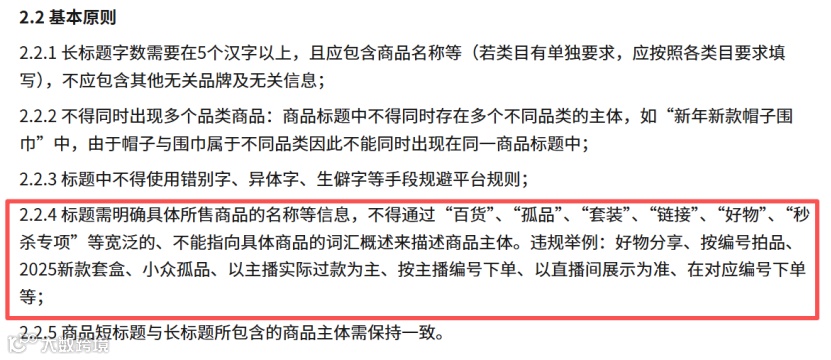 官方主要目的是在规范商品发布流程,防止通过非标准化话术进行灰度引流,提升搜索与推荐的精准度。同时,平台要求商品标题需真实、具体,长标题须包含商品名称、主体信息和卖点,短标题须与长标题一致,且不得使用错别字或生僻词规避审核。