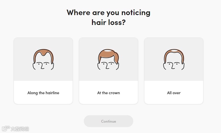 Hims的网站没有繁琐的装饰、无用的宣传语,而是开门见山、直入主题。流畅的购物体验,非常符合男性消费者的需求。