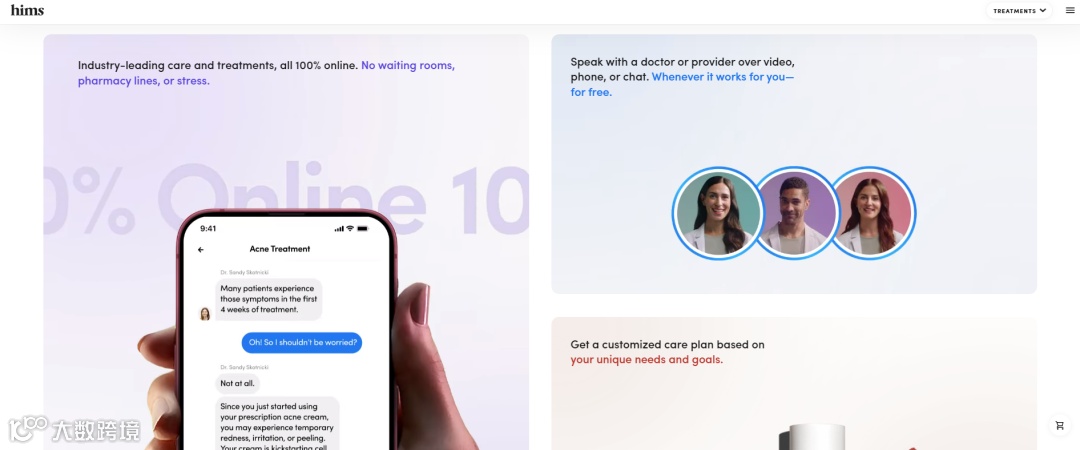 普通的DTC品牌可能只是在网站上售卖产品,而Hims不止售卖产品,更售卖医疗服务。