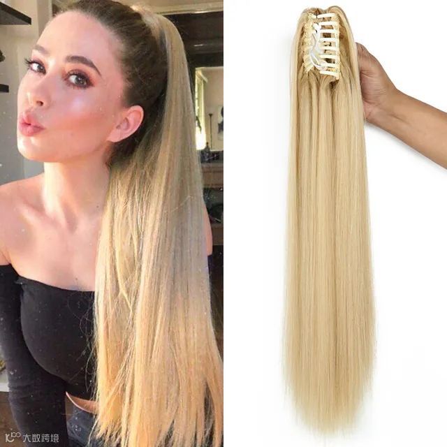Synthetic Long Straight Claw Clip On Ponytail Hair Extensions 24Inch Heat Resistant Pony Tail Hair piece For Women Daily Party