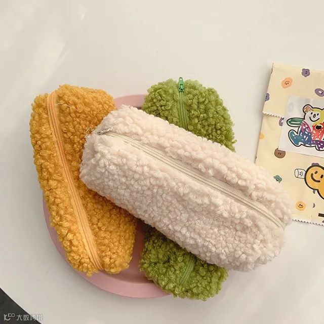 Lambswool Pencil Case Pen Pouch Plush Kawaii Zipper Bags Cosmetic Make Up Organizer Pouch School Office Stationery Pencil Bag