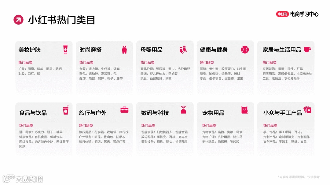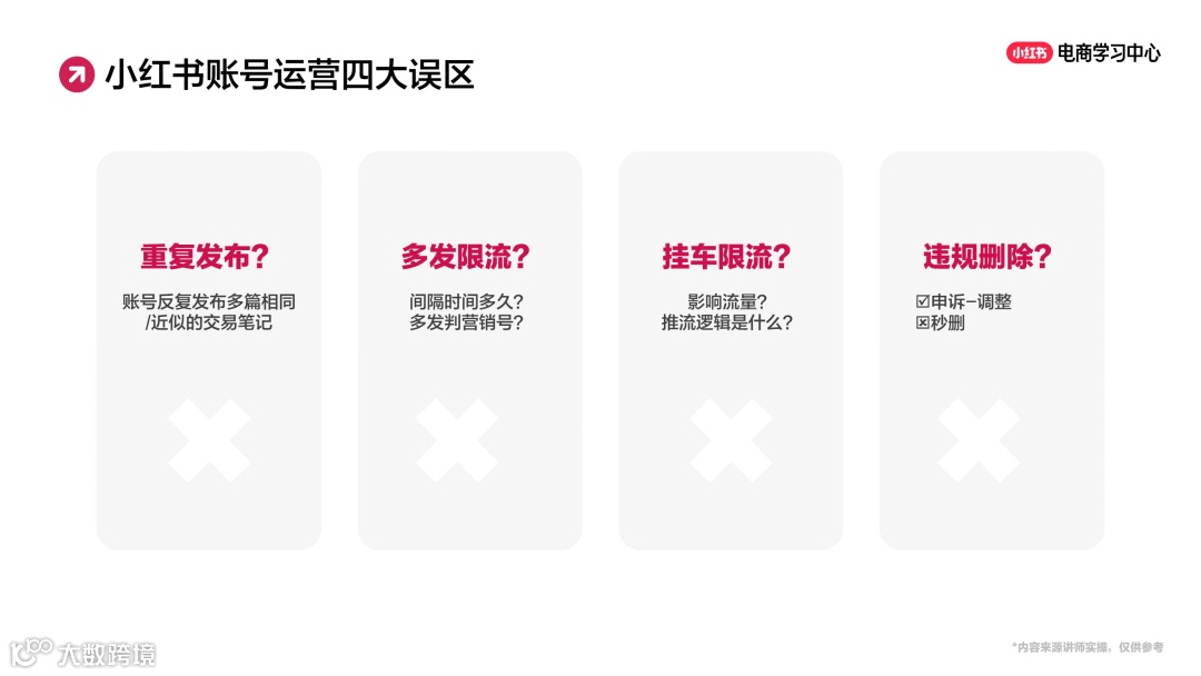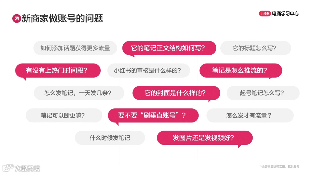 《小红书运营:2025小红书账号定位策略》(小红书电商学习中心出品,讲师大晴实操经验总结)聚焦小红书账号定位与运营,涵盖避坑要点、定位方法、运营技巧及平台新规。账号运营避坑方面,需规避限流风险,避免搬运、低成本二创、低质内容,同时警惕四大误区,如重复发布相同交易笔记、误解“多发限流”“挂车限流”,明确合规发布间隔与内容质量要求。账号定位是核心,需从商业、内容、人设三要素入手:商业定位结合自身资源确定产品(单品/多品、高/低客单)、用户画像(年龄、身份、痛点等)及变现方式(笔记带货、直播带货等),例如羊绒赛道商家可主打高质好货,客单价300-1000元,通过笔记+直播转化;内容定位基于产品卖点(材质、功能、风格)与用户需求,设计图文、视频、直播等呈现形式,热门笔记分基础版(货品怼拍/挂拍)、进阶版(场景代入、痛点解决)、高阶版(个人IP打造),需围绕产品细节与用户痛点输出;人设定位明确身份、价值与差异化,通过视觉锤(形象、场景、画质)、语言钉(语气、口头禅)强化记忆点,搭配账号“五件套”(名称、头像、背景图、简介、封面)打造辨识度,例如“四季青档口老板”“退休模特”等人设易建立信任。运营技巧上,需搭建素材库储备爆款选题,优化发布时间与频率,结合数据分析(封面点击率、互动率等)迭代内容,同时拆解对标账号(账号搭建、商品组合、呈现形式等)与爆款笔记,借鉴框架裂变内容。平台新规方面,客服回复率按店铺月支付金额分级考核(<10万考核24小时回复率≥90%,≥10万考核3分钟回复率≥80%),智能回复计入有效回复;新版店铺分按品质分(0.5权重)、物流分(0.3权重)、服务分(0.2权重)计算,5分制分优秀(≥4.8)、良好(4.6-4.7)等档位,需针对性优化品质负反馈、物流时效与客服服务,避免限流,提升消费者信任与转化。