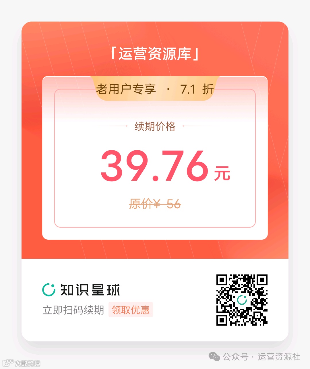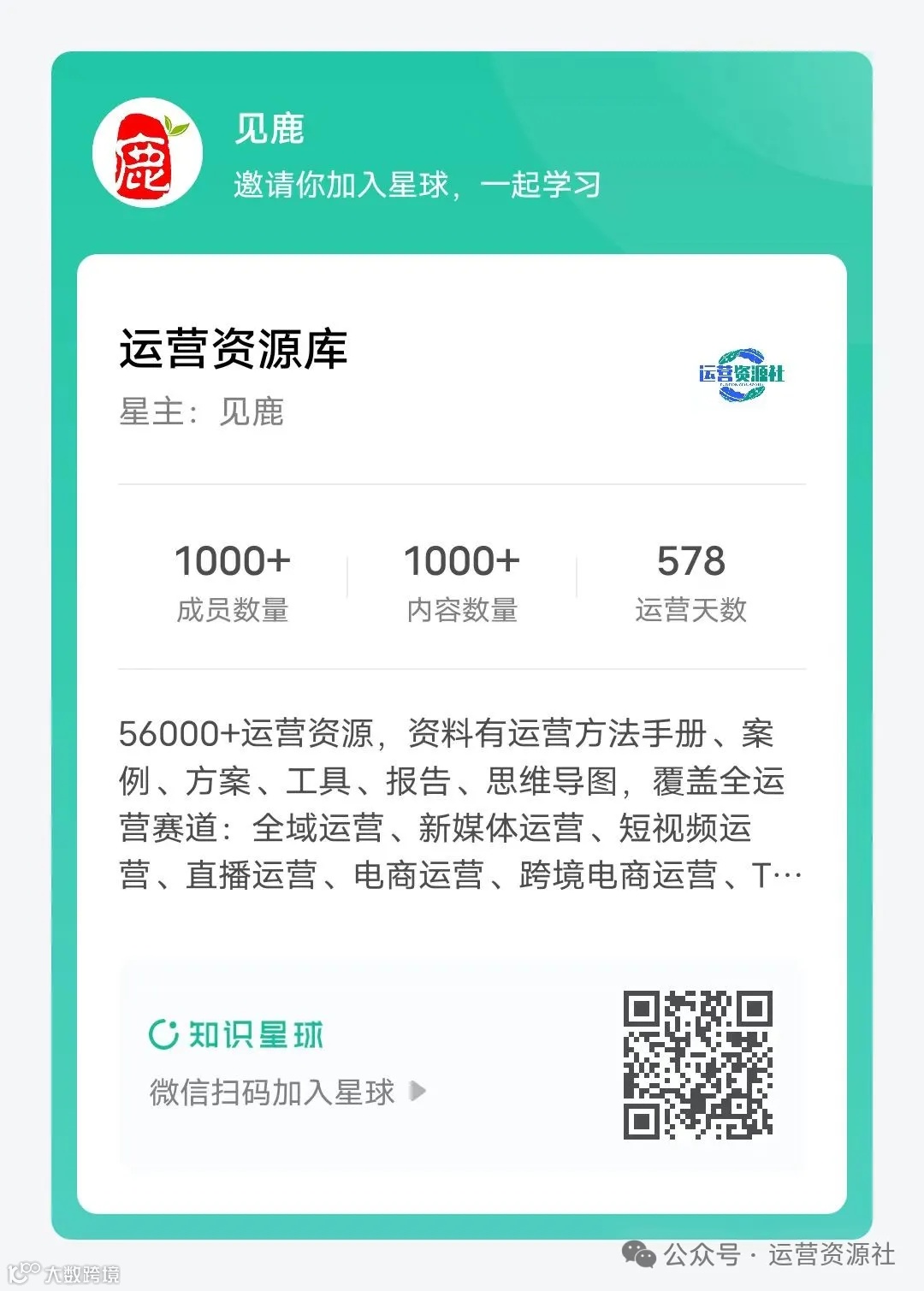免责声明:我们尊重版权,本公众号“运营资源社“均属于通过公开、付费、合法渠道获得,不用于商业用途,资料版权归原撰写/发布机所有。公众号及社群所发布的资料,仅供社群内部成员市场研究以及讨论和交流,若有异议,如涉侵权,请及时联系我们,我们依相关法律对内容进行删除或作相应处理!
