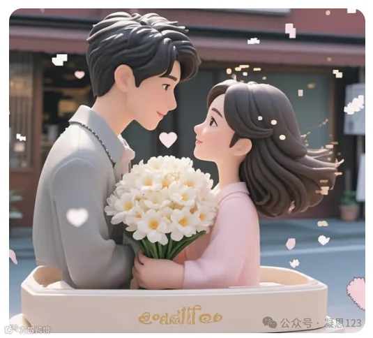 低根据照片上的内容打造一款细致精美、萌趣可爱的3D渲染收藏摆件,装置在柔和粉彩色调、温馨浪漫的展示盒中。展示盒为浅奶油色搭配柔和的金色装饰,形似精致的便携珠宝盒。打开盒盖,呈现出一幕温暖浪漫的场景:两位Q版角色正甜蜜相望。盒顶雕刻着“FOREVER TOGETHER”(永远在一起)的字样,周围点缀着小巧精致的星星与爱心图案。