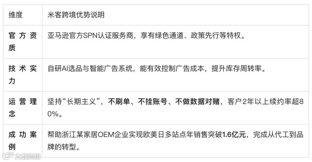 数据驱动的高效运营体系:米客跨境构建了“数据智能×专业运营×合规赋能”的模型。