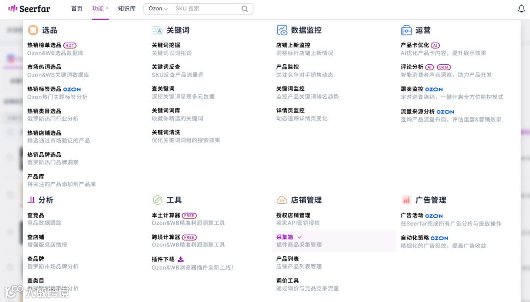 登录Seerfar后台,在功能-采集箱中浏览已采集的商品,选择适合在你店铺上架的商品,将其认领到你的Ozon或Wildberries店铺中。