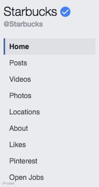 在Settings>Templates and Tabs可以自定义主页菜单选项,让客户访问页面时看到的你想展示给他们的内容。比如星巴克的主页上就可以选择浏览照片、查看具体提供的服务、访问其Pinterest帐户或查找你当前定位附近的星巴克实体店。