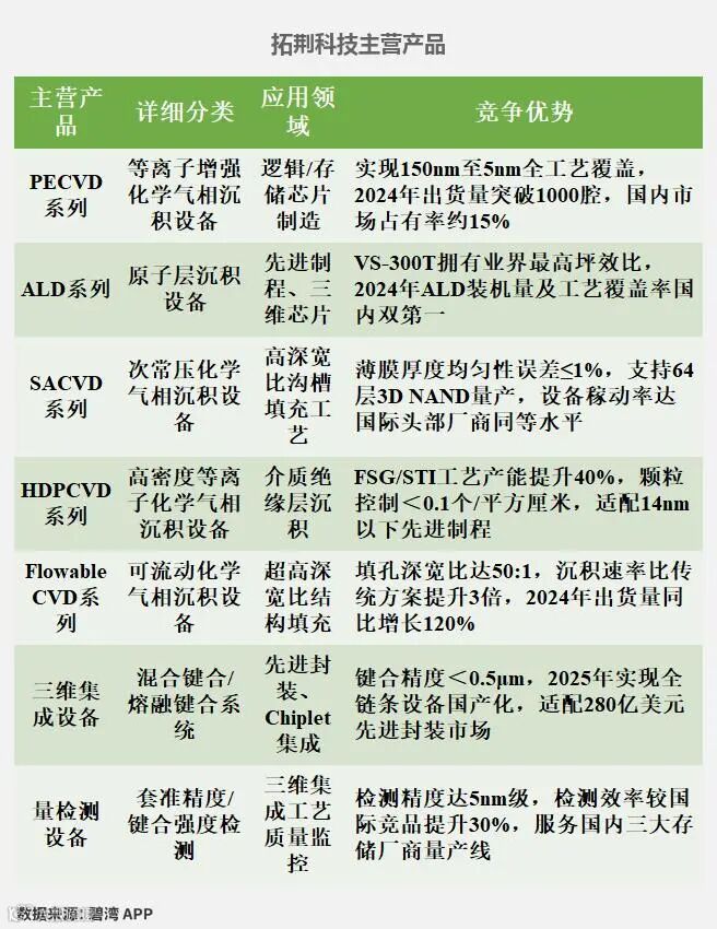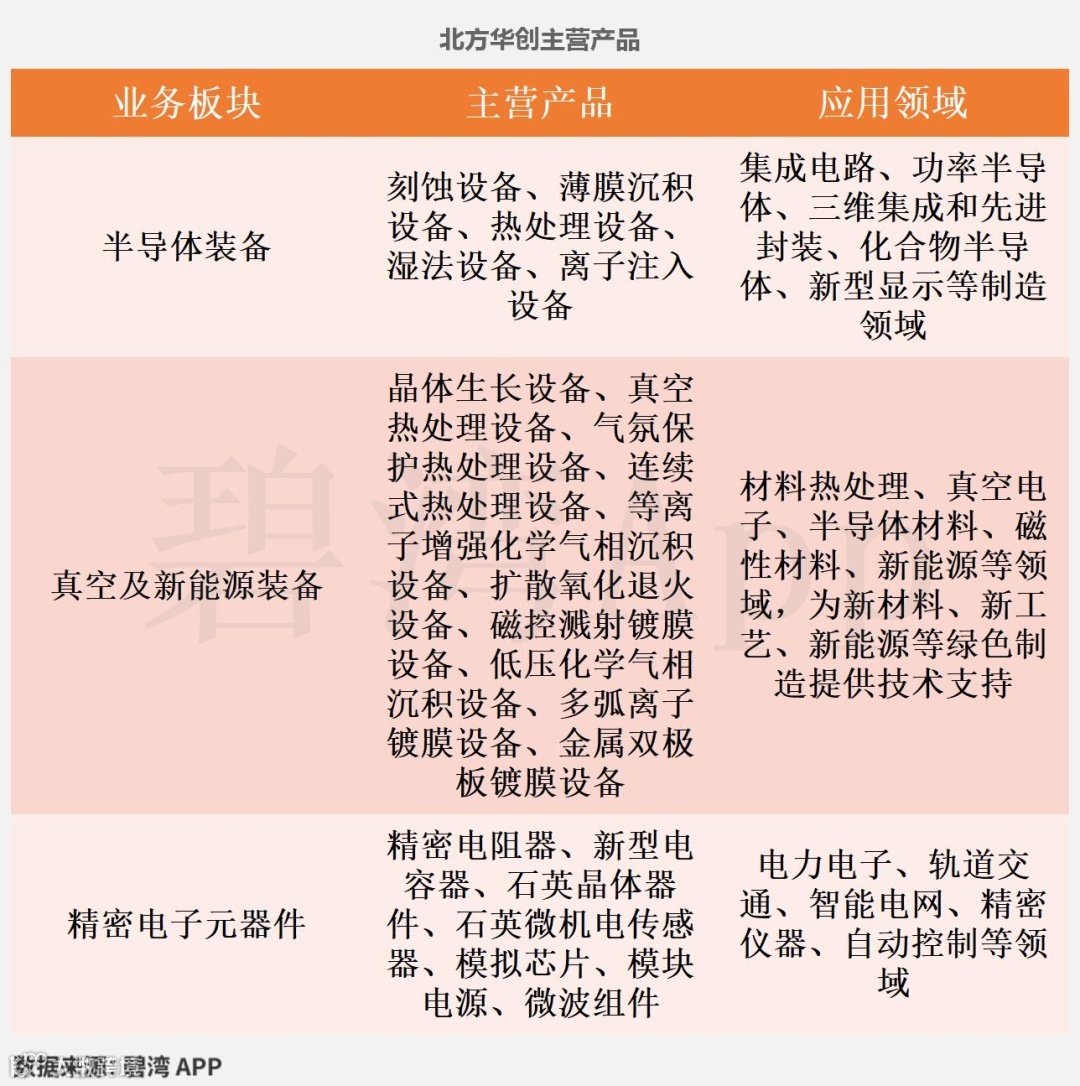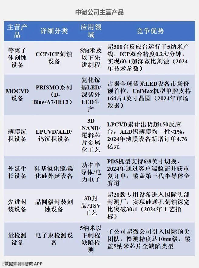 根据北方华创(002371)、中微公司(688012)、拓荆科技(688072)、华海清科(688120)、芯源微(688037)、盛美上海(688082)公开披露数据,对6家公司的主营产品信息等数据统计如下。