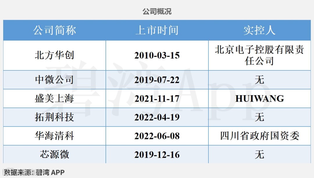 其中上市时间最早的是北方华创,至今已超过15年时间。上市时间最晚的是华海清科,至今不到4年时间。