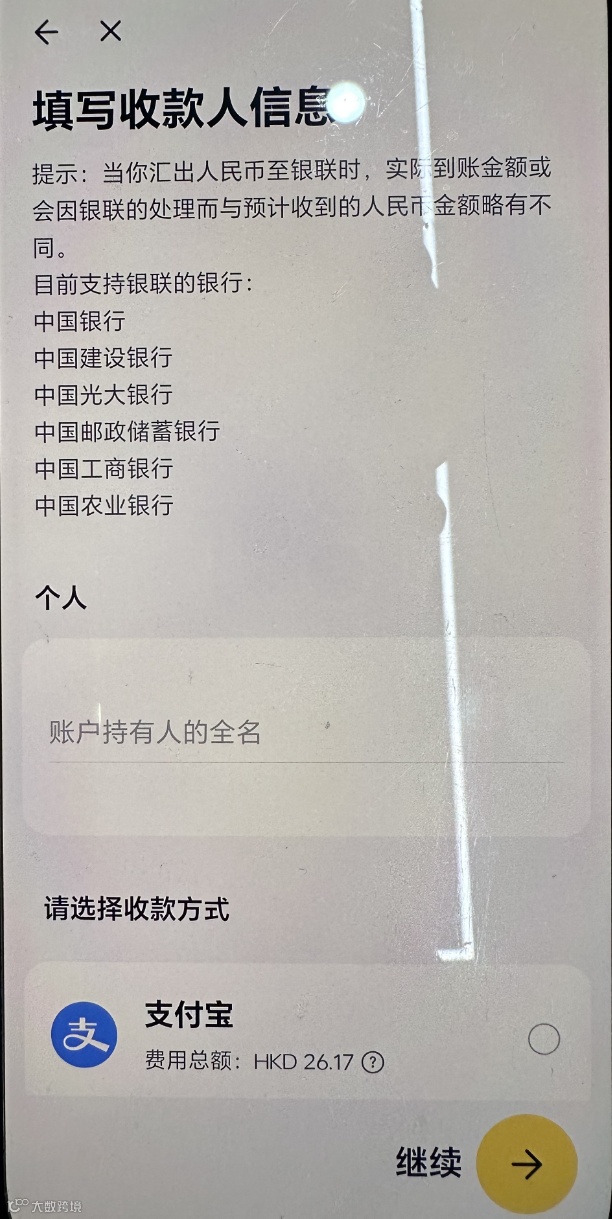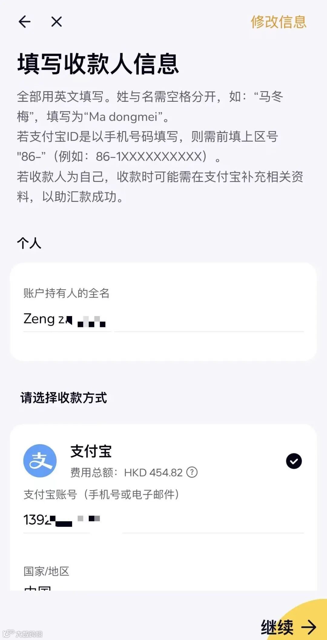 这里要注意下限额规定:直接汇款到银联卡,单笔不能超过30000人民币;通过支付宝汇款到银行卡,单笔限额是50000元人民币 。