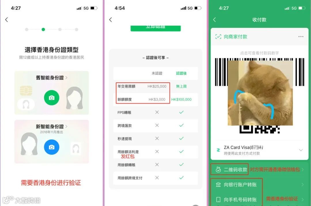 理论上香港钱包针对香港居民,不过不验证也能用,就是会有限制,像年交易限额2.5万港币、钱包余额限3千港币,还有“转数快”转账、跨境汇款这些功能都没法用。