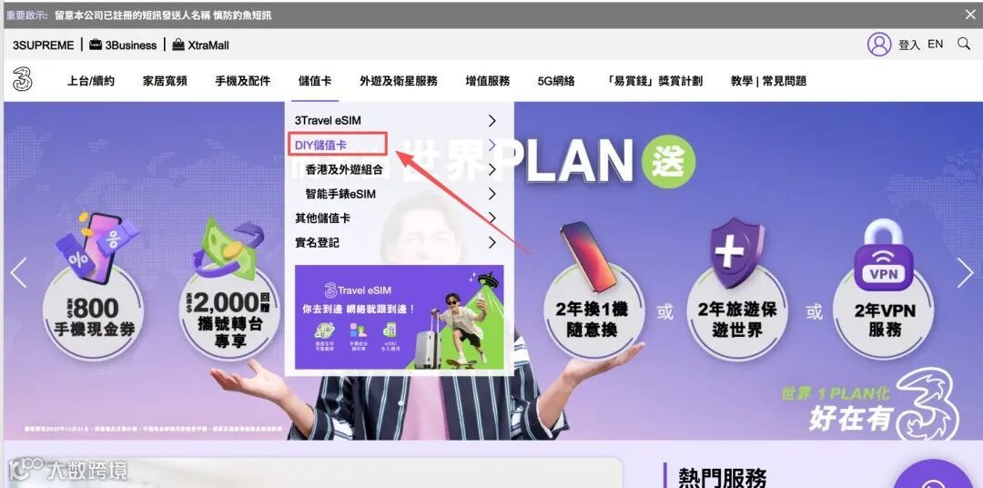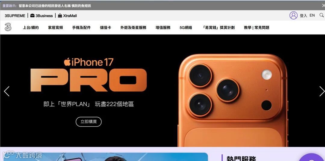 官方地址:https://www.three.com.hk/