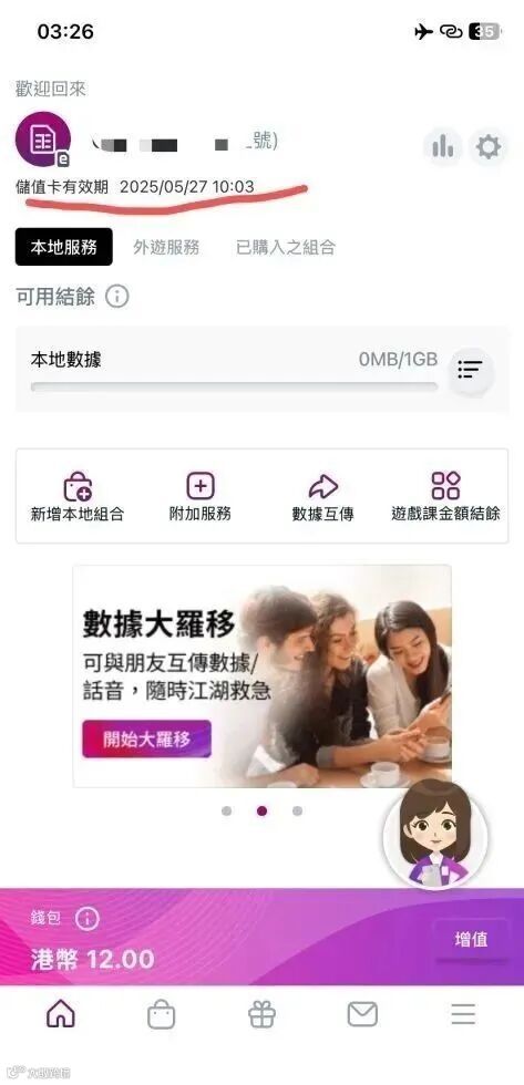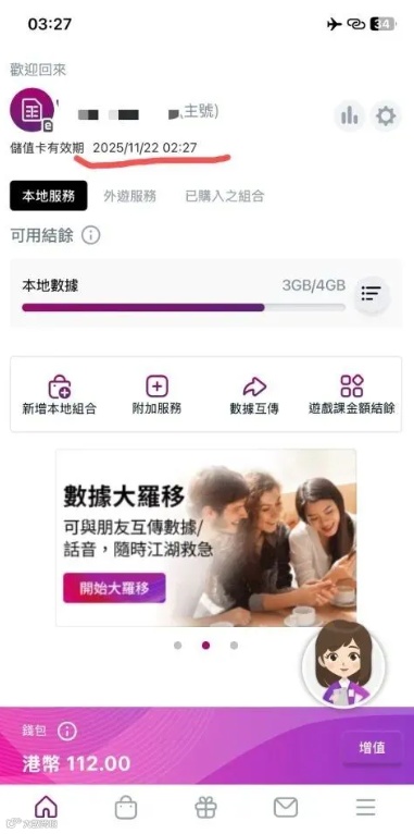 充值100港币还会送我们30天有效期的3GB香港流量,有空到了香港也可以使用。