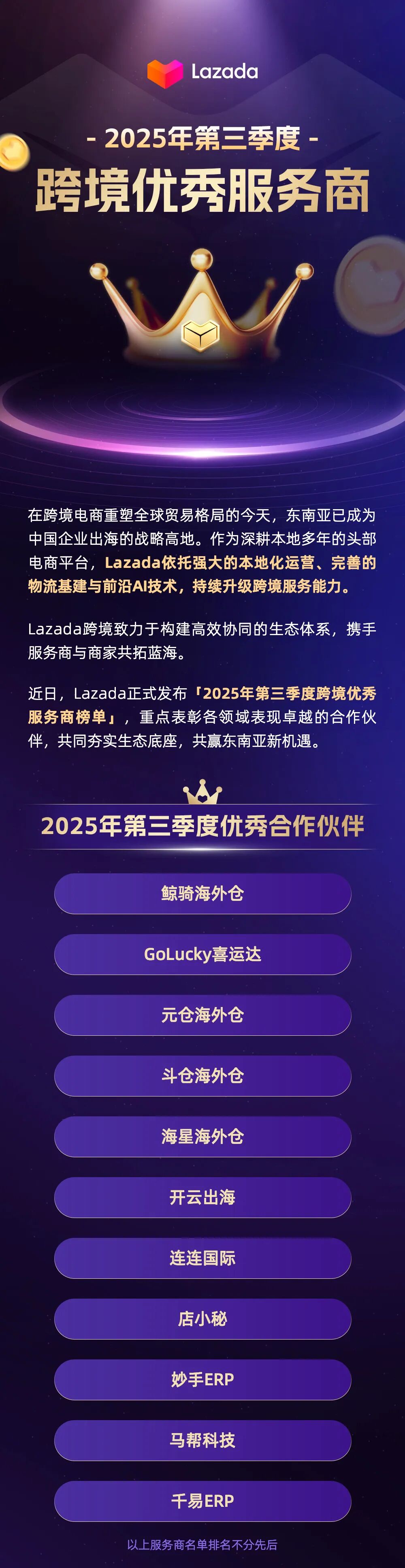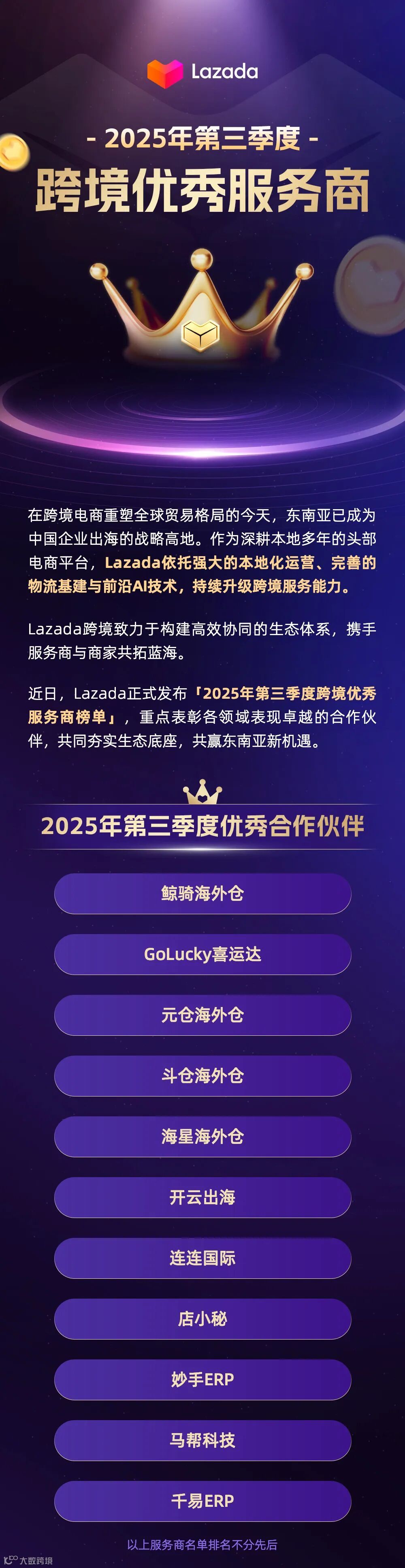 未来,斗仓将继续深化与Lazada的合作,加大智能仓储基础设施投入,优化全链路服务流程。秉承“高效、稳定、透明”的服务理念,斗仓将持续提升服务水平,致力于成为跨境卖家出海东南亚道路上最值得信赖的长期合作伙伴。