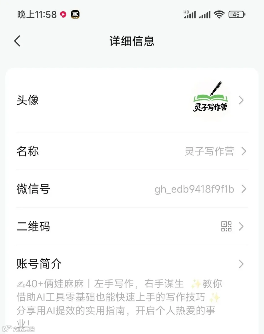 公众号名称:需包含定位关键词(如“40 + 姐姐养生圈”“阿玲的感恩日记”,方便用户搜索,每年可修改 2 次);