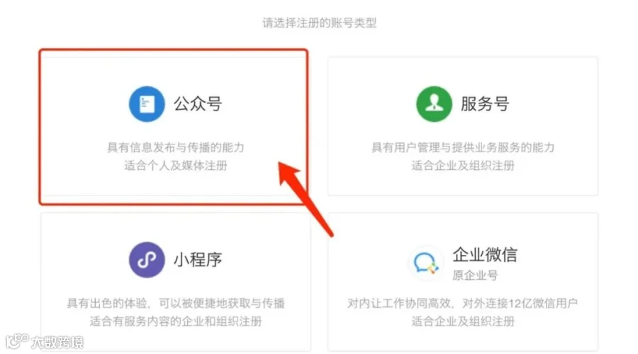 ❌避坑:别误点“服务号”,服务号现在也支持个人注册,无需营业执照也能开通,弊端是一个月只能群发四次,不适合个人。