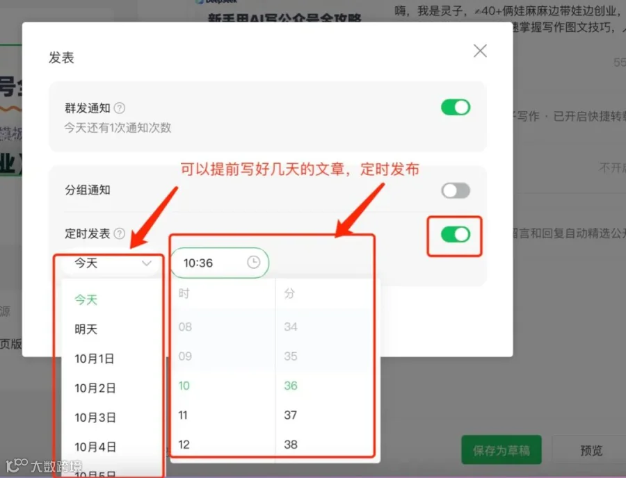 操作:可「立即发布」,也可「定时发布」(适合提前写好,选黄金时段自动发)。