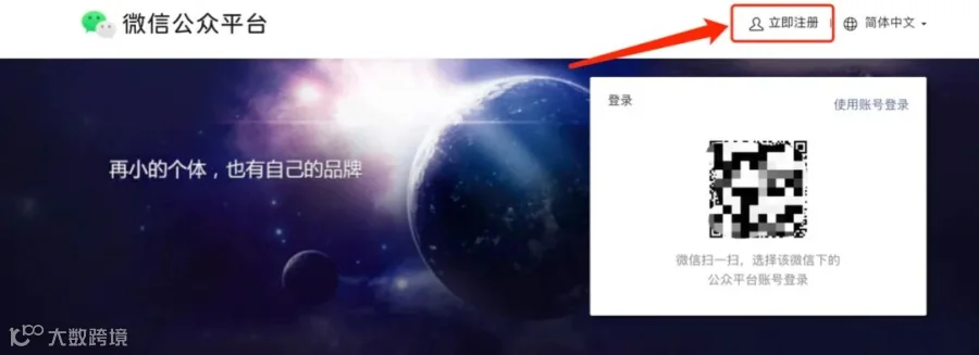 ✅操作:点击右上角「立即注册」→ 弹出 4 个选项(订阅号 / 服务号 / 小程序 / 企业微信)→ 必选“订阅号”(个体仅支持订阅号,服务号需营业执照);