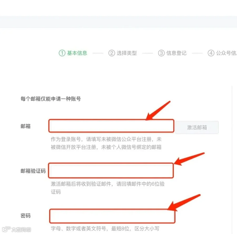 ❌避坑:若提示“邮箱已被占用”,换一个没绑定微信 / 小程序 / 企业微信的邮箱;密码别设太简单(如 123456),易被盗号。