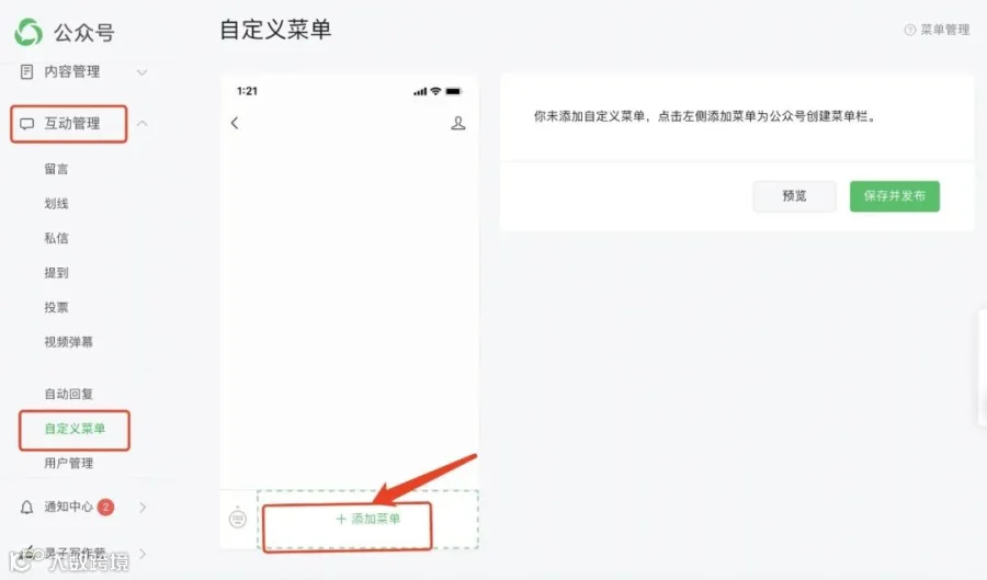 3)菜单栏(入口:左侧菜单“自定义菜单”):
