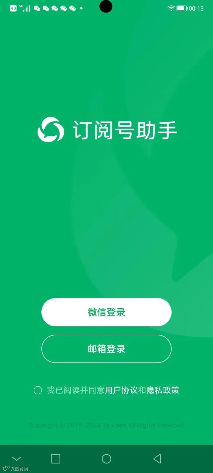 ✅操作:打开公众号助手APP,「注册 / 登录」→ 选「注册订阅号」。
