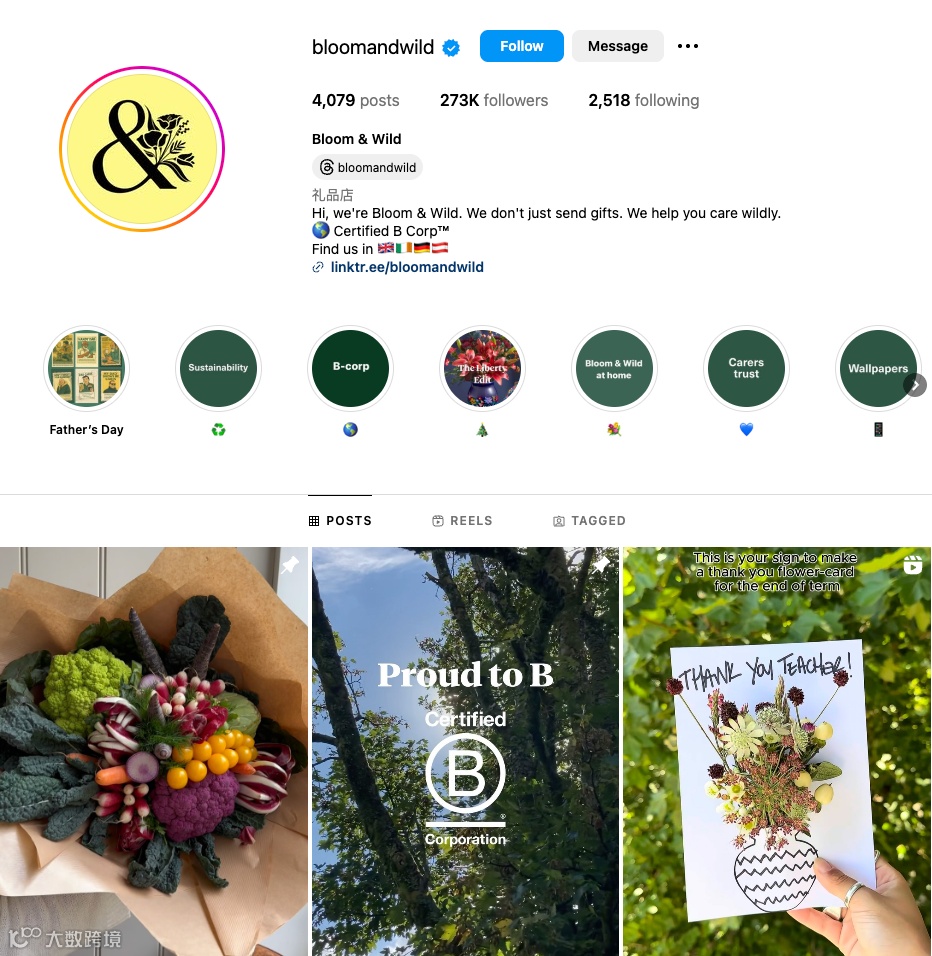 正是得益于这些具备高度洞察力和人情味的内容,Bloom & Wild的官方账号吸引了27.3万的用户关注。但这还不够,从整体来看,这些自制内容对品牌在公域传播的帮助还是比较有限的。