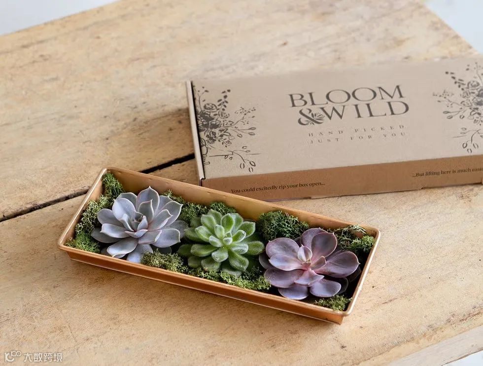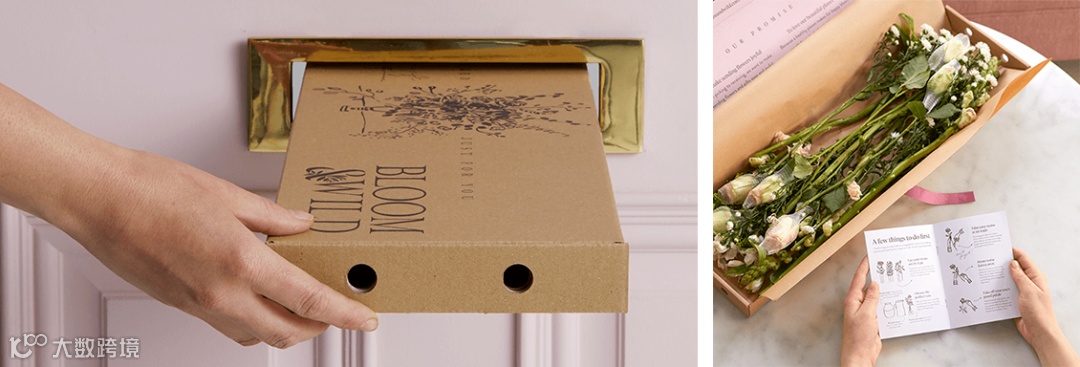 在这样的趋势下,英国品牌Bloom & Wild借助“信箱花束”(Letterbox Flowers)这一创新形式在市场上脱颖而出——其专属扁盒包装可直接投入家庭信箱,大幅降低收货门槛。2021年就实现了1.5 亿英镑的营收,成为英国在线花卉市场的领头品牌 。