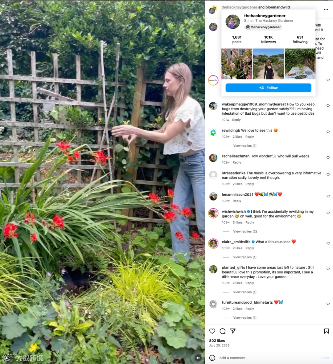 Stina就是其中之一,她本身就是一个园艺师,运营着一个名为thehackneygardener的社媒账号。在具体的合作视频中,Stina以“Rewilding Your Garden(让你的花园回归原始)”为题,向大家解释了这么做的原因,不仅仅是为了多样性,更是为了欣赏和了解真实的花朵。