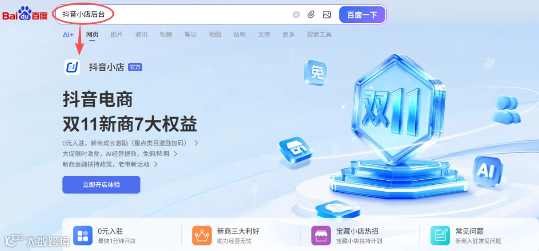 电脑端:百度搜索 “抖音小店”(官网域名:fxg.jinritemai.com),进入抖店官网后台: