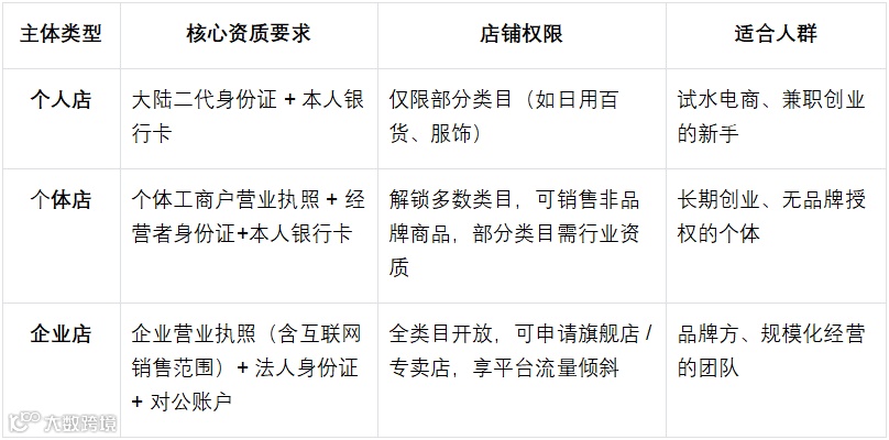 划重点:新手优先选 “个人店” 试水,限制较多;若计划长期做,直接办理个体工商户营业执照,解锁更多类目权限。