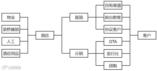 个人认为在产业链方面,上游需要关注的点是成本,下游是直销渠道。因为酒店行业的竞争,其实就是渠道上的竞争,因为渠道会给酒店带来流量。如果自己不能掌握渠道,一旦渠道占比发生变化,业绩下滑出租率下降是在所难免的,也是必然的。
