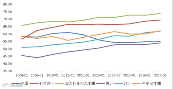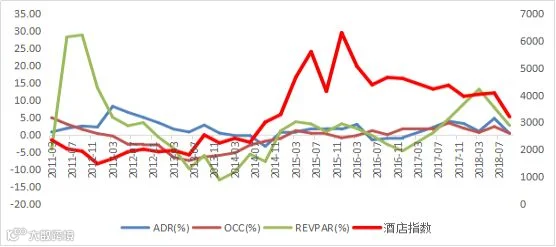 ②国家旅游局提供的我国星级酒店结构数据,从2000年到2017年,一星级和二星级酒店的数量占比一直减少,三星级、四星级和五星级酒店的数量占比一直增加。