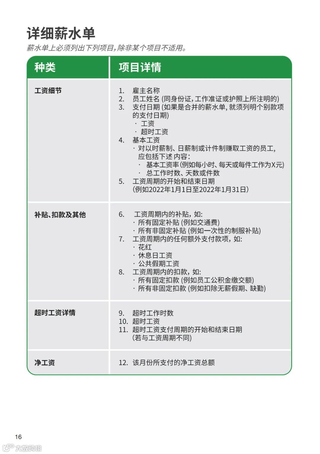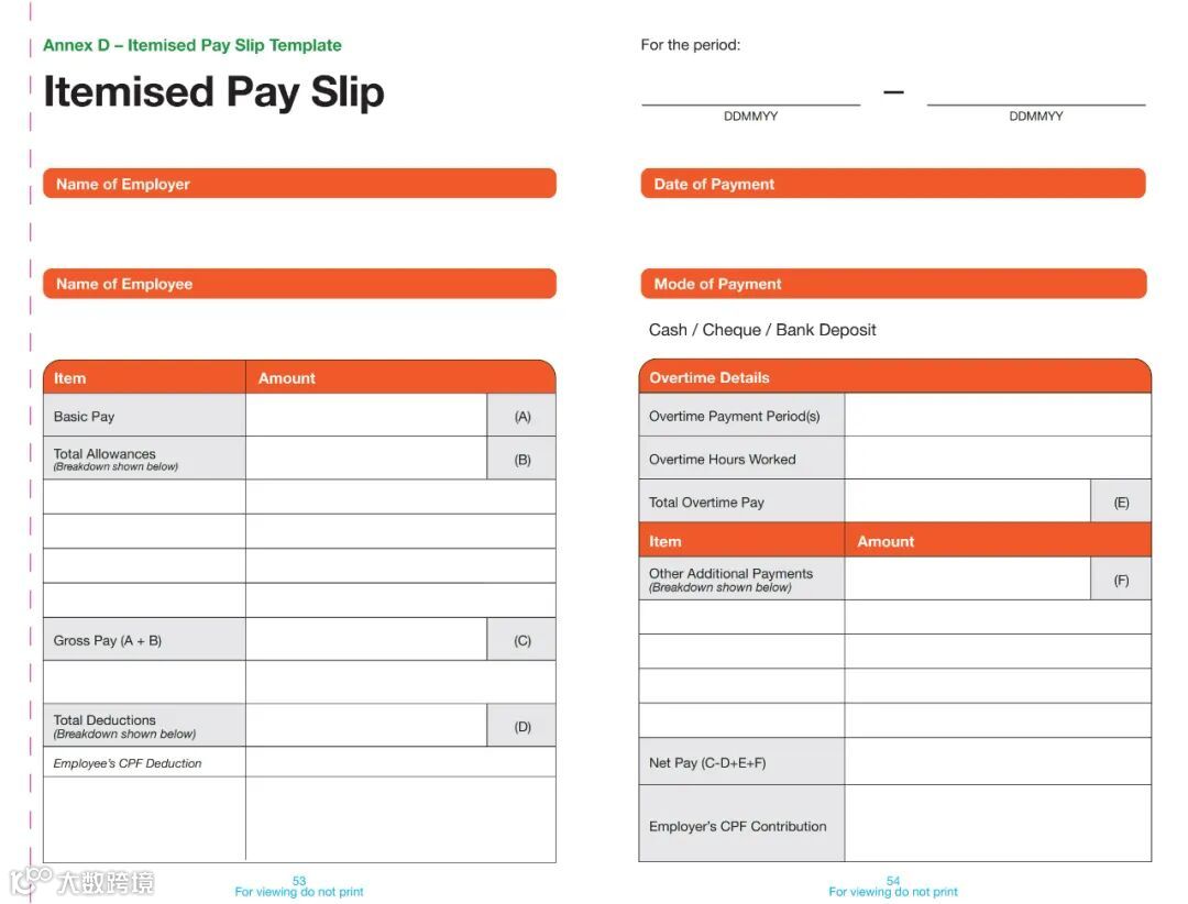 自2016年4月1日起,所有雇主必须向受《雇佣法令》覆盖的员工发放明细工资单,详情请访问以下网站:https://www.mom.gov.sg/employment-practices/salary/itemised-payslips。