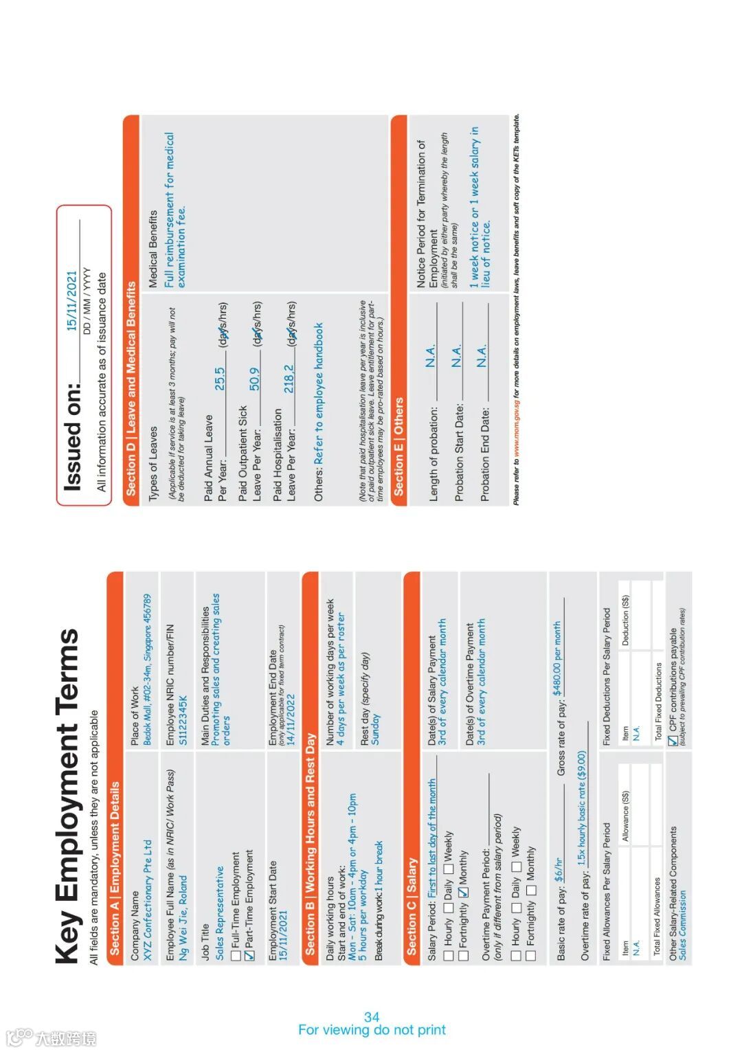 对于这些员工,雇佣条款和条件需由雇佣合同另行约定。