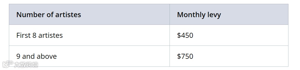 您还需要为每位艺人缴纳外籍工人税,具体取决于您雇用的人数: