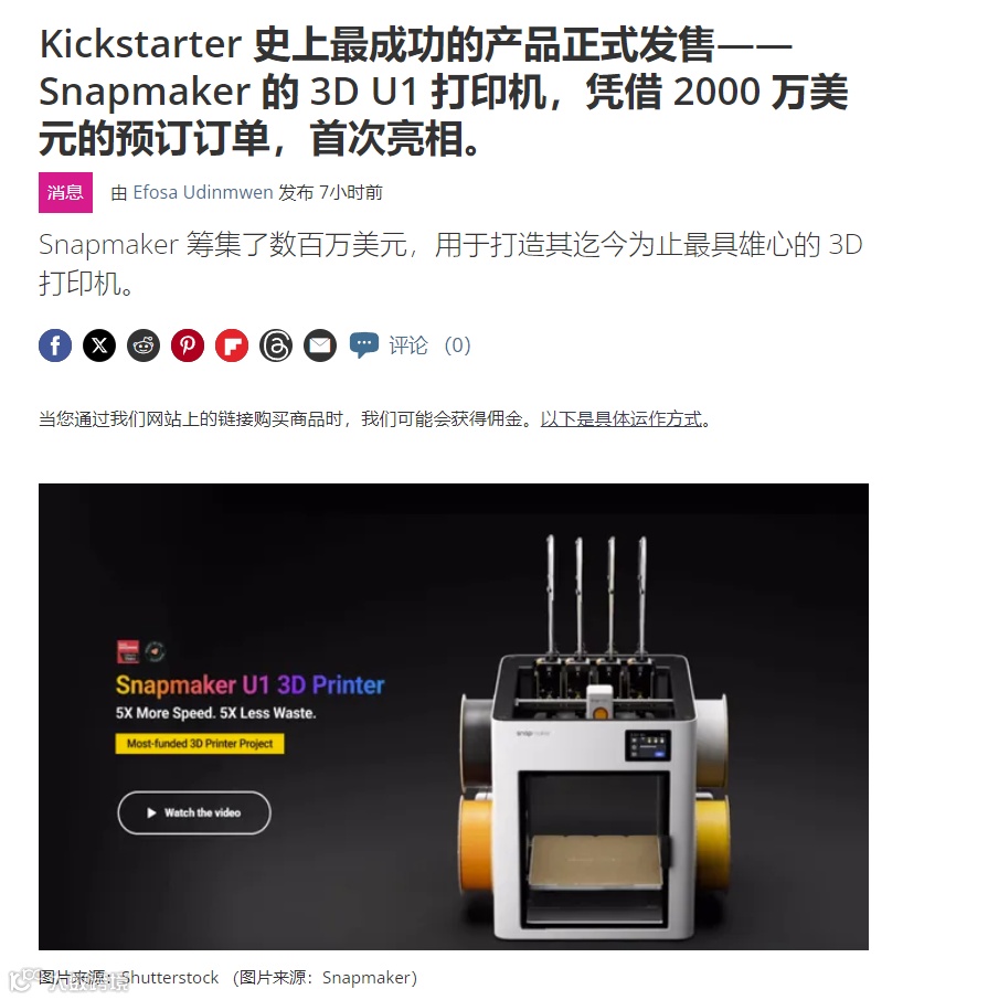前有Anker旗下eufy Maker斩获4500万美元众筹,登顶Kickstarter最成功项目;后有Snapmaker凭借U1首次亮相便一举拿下2000万美元预定单,同样跻身成功榜单。