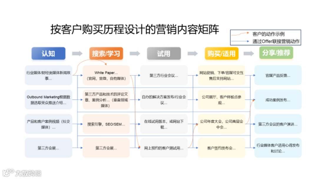 图四:按客户购买历程设计的营销内容矩阵(示例)