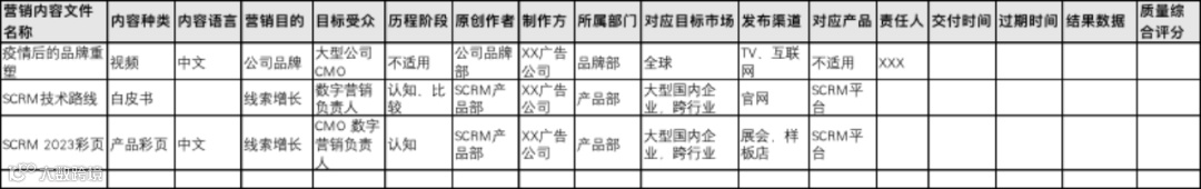 这样,我们可以估算出一年的营销内容需求,并按照营销活动的时间表,排出一年的营销内容开发计划和所需要的资源。