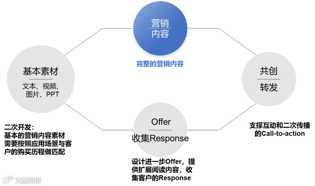 下图说明了营销内容需要对基本素材进行包装,保证内容对整个营销Campaign的支撑。
