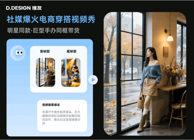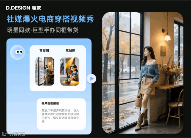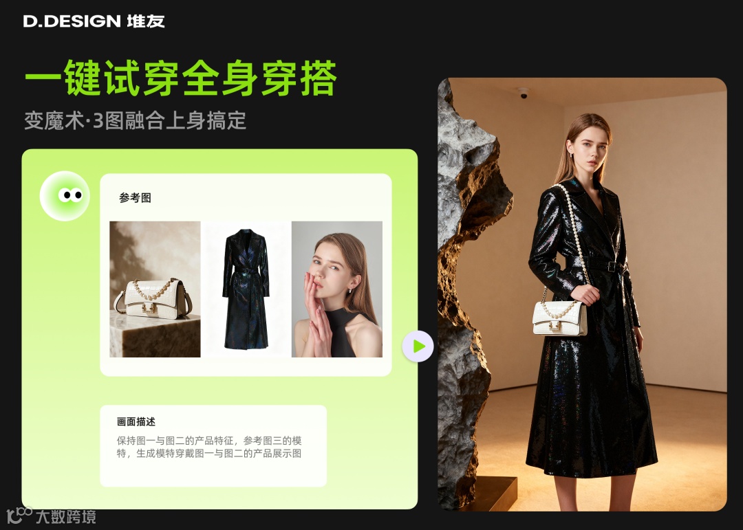 1个模特+1件外套+1只包=1套自带场景的完整卖家秀,无论作为主图或商详页、营销海报素材都妥妥的!并且,还能用堆友视频生成进阶版的10秒真人卖家秀,哪哪都不愁卖💰